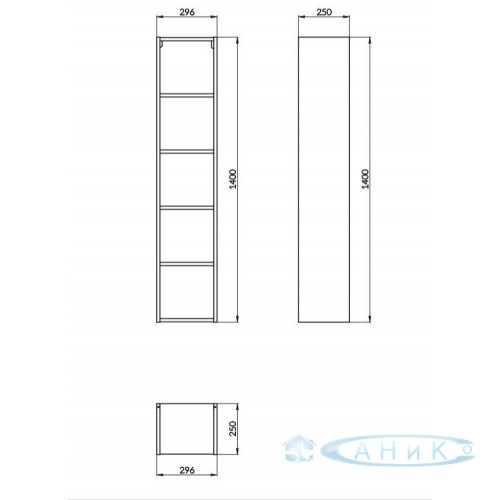 Подвесной открытый пенал белого цвета, изготовлен из ДСП.