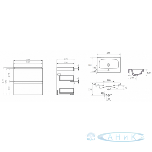 Сет из шкафчика под умывальник и умывальника Moduo Slim 60. Фасады и корпус шкафчика изготовлены из лакированого ДСП. Удобная фрезерованая ручка. Система бесшумного закрытия soft close. Внутри шкафчик серого цвета.
