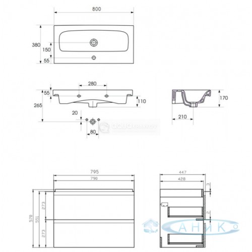 Умывальник мебельный Cersanit Moduo 80. Крепления в комплекте. Страна - Польша Способ монтажа - ..