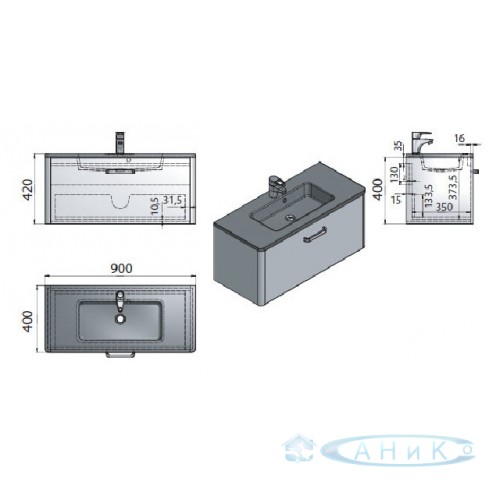 В набор входит: шкафчик Fancy Marble Fiji 90, умывальник Annabelle 90 (4009101).