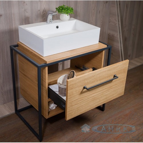 В производстве тумбы Loft использовано самое обычное ДСП, тумба сделана в современном стиле с использованием метала с порошковой покраской на регулируемых ногах с возможностью модификации, в трендовом цвете дуб + металл. Преимуществом тумбы Loft по сравнению с другими является то, что цвет везде по всей тумбе будет совершенно одинаковым, а за счет использования ящика Hettich модели Atira в цвете "серый антрацит" создается гармония между ящиком и тумбочкой. Все выглядит красиво не только внутри, а и снаружи.
