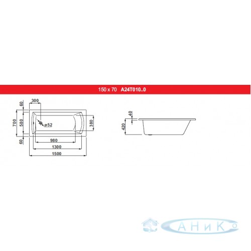 Ванна Roca Linea 150x70 прямоугольная акриловая ванна в комплекте с ножками.