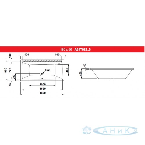 Ванна Roca Vita 180x90 прямоугольная акриловая ванна в комплекте с ножками.