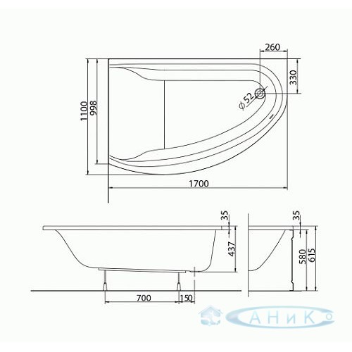 Ванна Kolo Mirra 170x110 правая в комплекте с ножками.