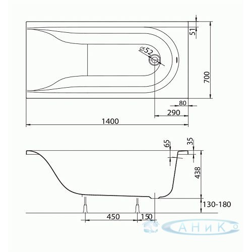 Ванна Kolo Mirra 140x70 в комплекте с подголовником, ножками и креплениями.