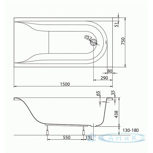 Панель универсальная UNI4 150 в комплекте с креплениями. Для комплектации с прямоугольными ваннами. ..