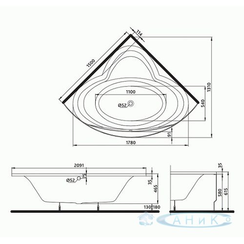 Ванна Kolo Relax 150x150 в комплекте с ножками.