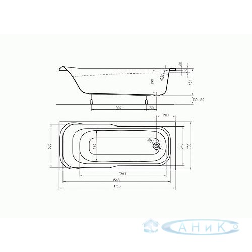 Панель универсальная UNI4 170 в комплекте с креплениями. Для комплектации с прямоугольными ваннами. ..