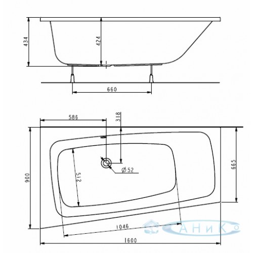 Ванна Kolo Split 160x90 левая в комплекте с ножками. Для комплектации с фронтальной(PWA1661) и боковой панелью(PWA1662).