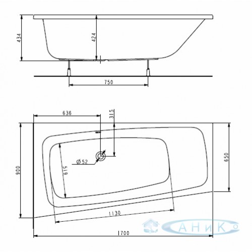 Ванна Kolo Split 170x90 левая в комплекте с ножками. Для комплектации с фронтальной(PWA1671) и боковой панелью(PWA1672).
