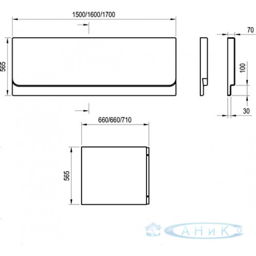 Панель Ravak Chrome 150 . Для комплектации с прямоугольной ванной Chrome 150 и креплениями (B23600000N)
