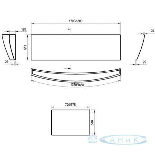 Панель Ravak Evolution 170 . Для комплектации с прямоугольной ванной Ravak Evolution 170 и креплениями (B2H000000N)