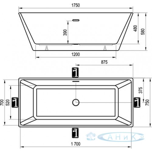Форма ванны - Прямоугольная отдельностоящая