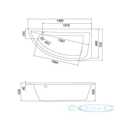Панель для ванны Cersanit Nano 140 в комплекте с креплением. Длина - 140 см Высота - 54 см ..