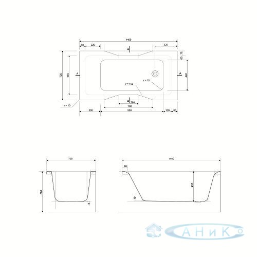 Ванна в комплекте с ножками. Изготовлено из акрила с антибактериальным компонентом.