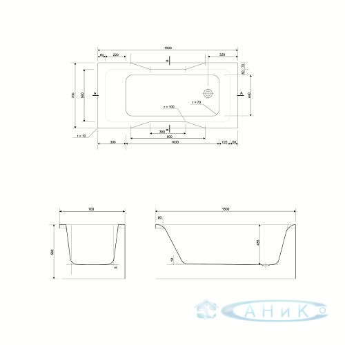 Ванна в комплекте с ножками. Изготовлено из акрила с антибактериальным компонентом.