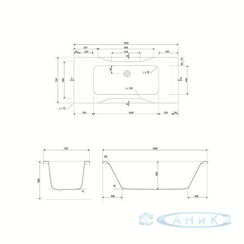 Ванна в комплекте с ножками. Изготовлено из акрила с антибактериальным компонентом.