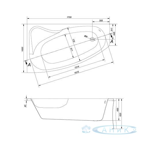 Панель Cersanit Sicilia 170 в комплекте с креплением. Длина - 170 см Высота - 58 см..