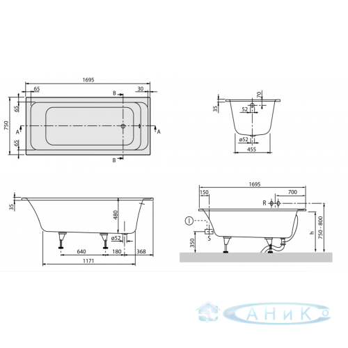 Ванна Ravak Villeroy & Boch Architectura 170x75. В комплект не входят ножки.