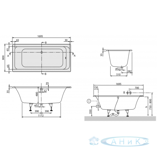 Ванна Ravak Villeroy & Boch Architectura 170x80. В комплект не входят ножки.
