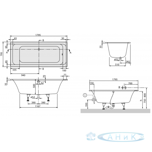 Ванна Ravak Villeroy & Boch Architectura 180x80. В комплект не входят ножки.