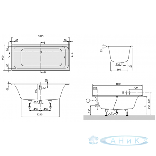 Ванна Ravak Villeroy & Boch Architectura 190x90. В комплект не входят ножки.