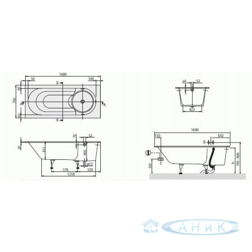 Ванна Ravak Villeroy & Boch Libra 160x70. В комплект входят ножки.