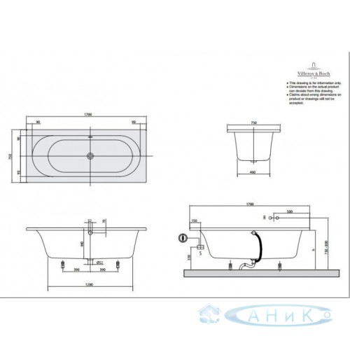 Ванна Ravak Villeroy & Boch Loop & Friends 170x75. В комплект не входят ножки.