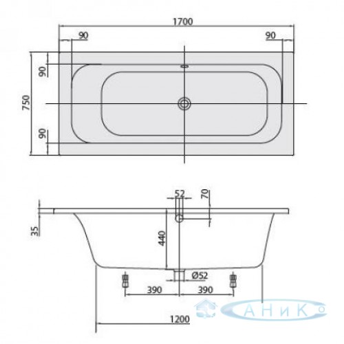 Ванна Ravak Villeroy & Boch Loop & Friends 170x75. В комплект не входят ножки.