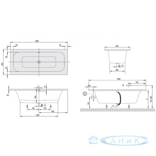 Ванна Ravak Villeroy & Boch Loop & Friends 180x80. В комплект не входят ножки.
