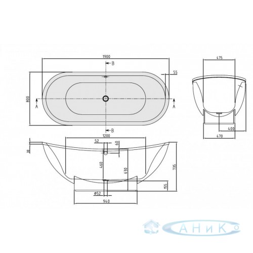 Ванна Ravak Villeroy & Boch My Nature 190x80. Ванна отдельностоящая с деревянной консолью.