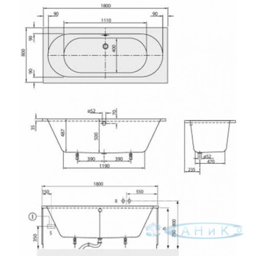 Ванна Ravak Villeroy & Boch O.Novo 180x80. В комплект не входят ножки.