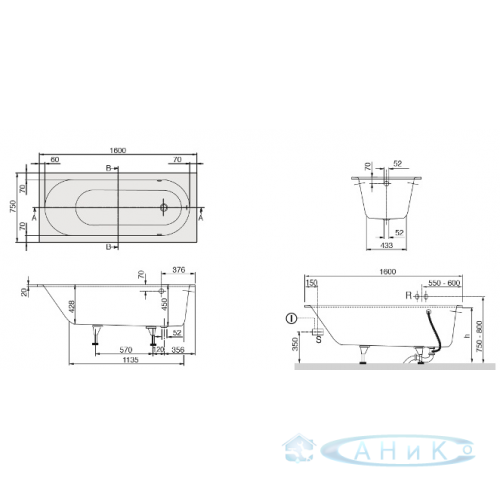 Ванна Ravak Villeroy & Boch Oberon 160x75. В комплект входят ножки.