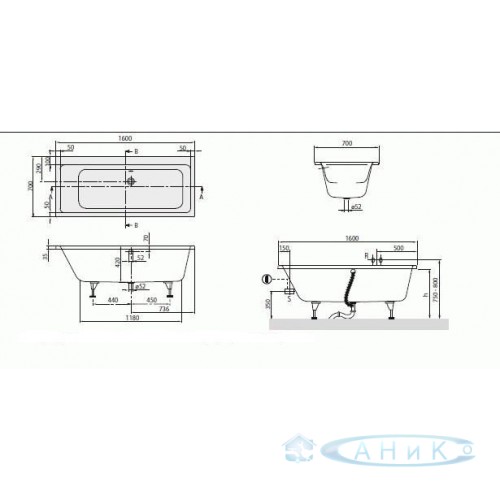 Ванна Ravak Villeroy & Boch Subway 160x70. В комплект не входят ножки.