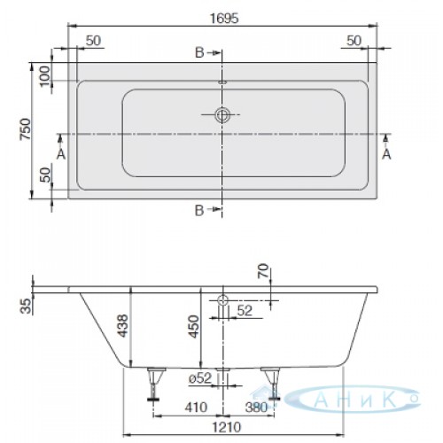 Ванна Ravak Villeroy & Boch Subway 170x75. В комплект не входят ножки.