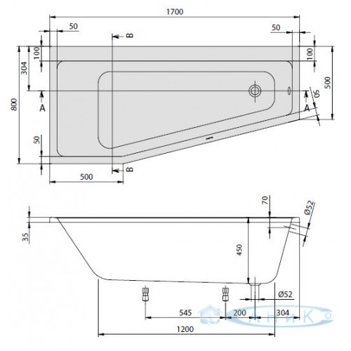 Ванна Ravak Villeroy & Boch Subway 170x80 левая. В комплект не входят ножки.