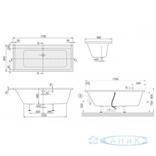 Ванна Ravak Villeroy & Boch Subway 180x80. В комплект не входят ножки.