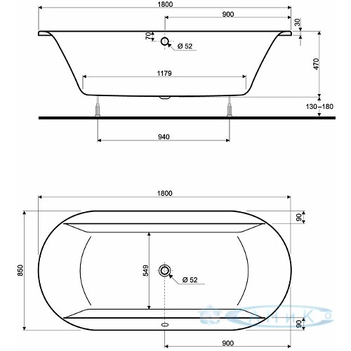 Ванна Kolo Clarissa 180x85 в комплекте с ножками.