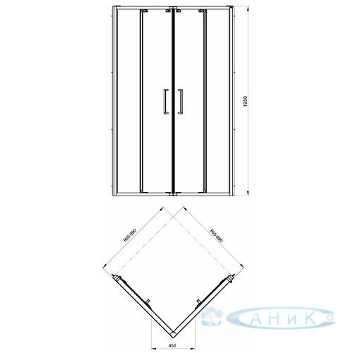 Душевая кабина Kolo Ultra 90х90 прозрачное стекло Screen Guard, раздвижные двери.