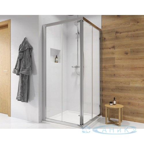 GEO душевая кабина 90см, квадратная, двери раздвижные, прозрачное стекло, серебристый блеск, с покрытием Reflex