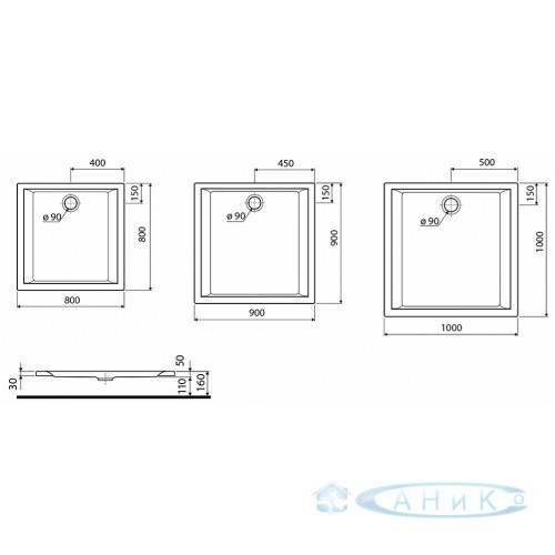 Поддон Kolo Pacyfik 100x100x5. Для комплектации с кабиной, ножками.