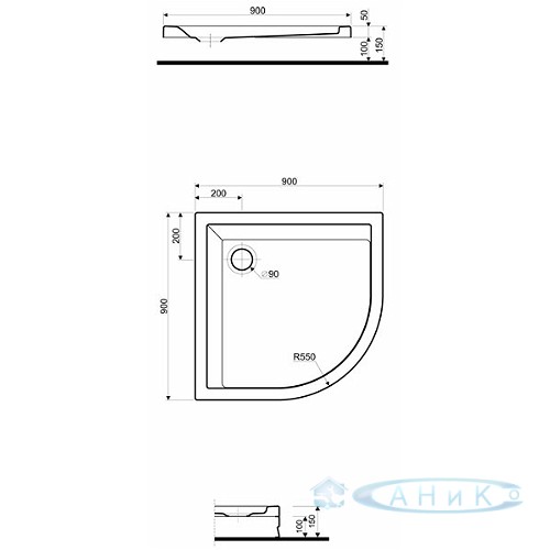 Кабина полукруглая FIRST 90х90. Размер душевой кабины можно регулировать от 875 до 895 мм. Вход в ..