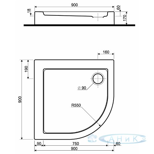 Кабина полукруглая FIRST 90х90. Размер душевой кабины можно регулировать от 875 до 895 мм. Вход в ..