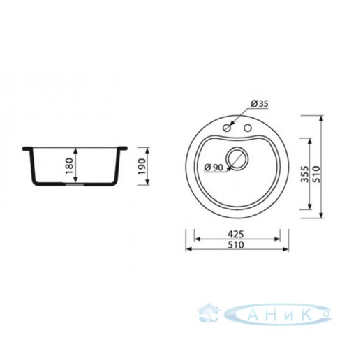 Круглая гранитная кухонная мойка Fancy Marble Texas, размер 495х495х205 мм
