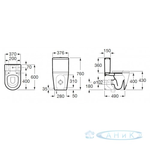 Унитаз-компакт Roca Inspira для комплектации с сиденьем (A80152С00B).