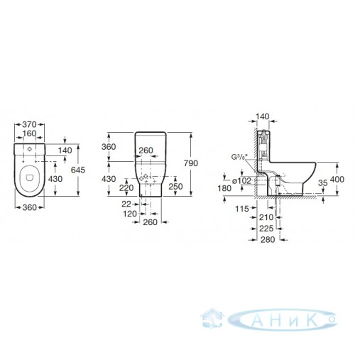 В комплект входят: чаша унитаза Roca Meridian-N горизонтальный слив (342247000), бачок унитаза Roca Meridian-N 6/3 л. с двойным смывом и нижним подводом воды (341240000). Совместимо с сиденьями Multiclin (811503000) и Multiclin Premium(811501000) с функцией биде для унитазов круглой формы.