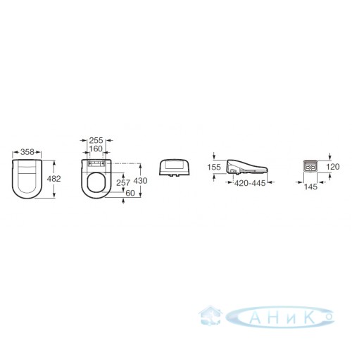Функции: Контроль интенсивности воды, контроль температуры воды, контроль температуры воздуха, мытье анальной области, мытье области промежности, подогрев сиденья, подсветка, пульсирующая очистка, режим энергосбережения, самоочищающаяся форсунка, система SoftClose®, функция сушки, часы, вибрационная очистка, дезодорирующая функция (Plasma Cluster), деодорирующая функция, регулировка положения форсунки.