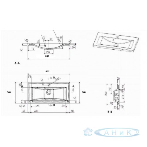 Способ монтажа - Мебельный, подвесной (кронштейны), на столешницу