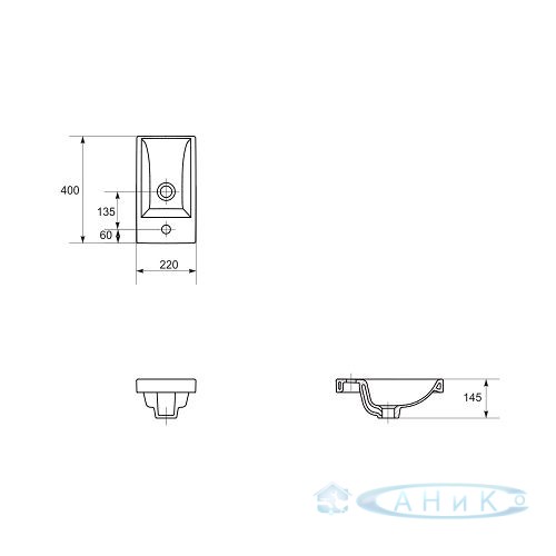 Умывальник мебельный Cersanit Como 40 с отверстием для арматуры. Возможность монтажа с MELAR или MESTA.