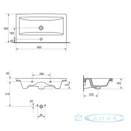 Умывальник мебельный Cersanit Como 80 с отверстием для арматуры. Возможность монтажа с MELAR или MESTA.